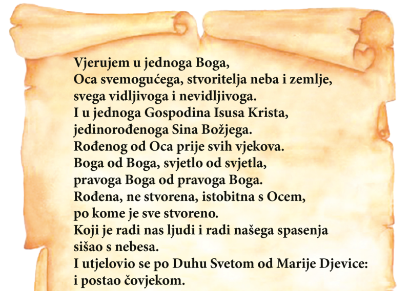 Od samih početaka, Crkva ne živi od ljudskih ideja, već od vjere u Isusa Krista, Sina Božjega. Ta vjera nije samo skup naučenih riječi, nego živa ispovijest zajednice vjernika, koja se kroz stoljeća čuva i prenosi. Među najvažnijim ispovijestima vjere posebno mjesto zauzima Nicejsko-carigradsko vjerovanje, koje i danas molimo na svakoj svečanoj svetoj misi.