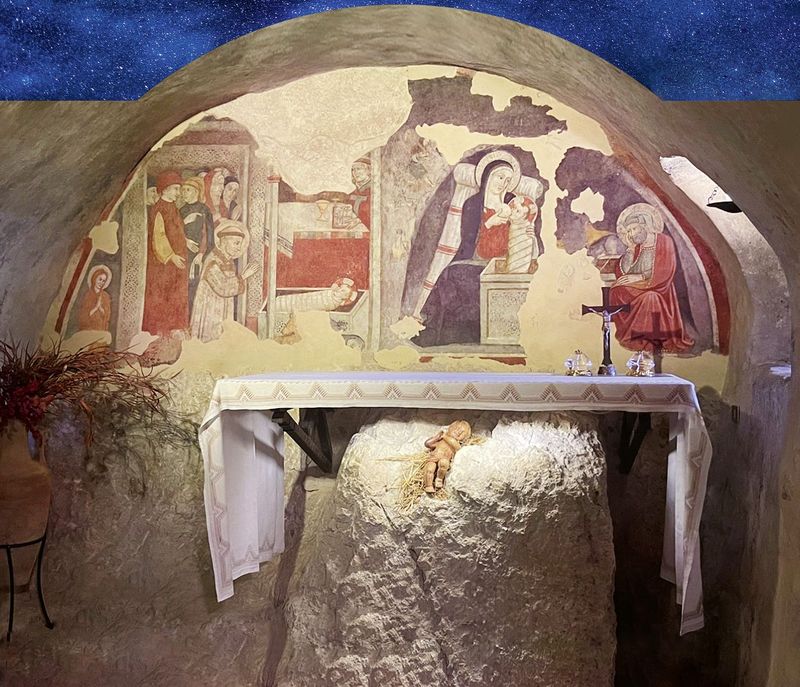 Razmišljanja o Kristovom životu dovela su Franju do stvaranja prvih jaslica u Grecciu, u Italiji 1223. godine. Prema prvom životopiscu svetoga Franje, bratu Tomi iz Celana, Franjo je želio «prikazati rođenje toga Djeteta u Betlehemu na takav način da svojim tjelesnim očima možemo vidjeti što je sve pretrpio…!» Božić nam govori kako je čovjek Bogu središte svega stvorenoga. Središnja osoba i smisao Franjina života bijaše utjelovljeni Krist. On ga je susreo. Taj susret ga je promijenio. Od tog susreta Franju zanima samo on! Od njega sve polazi, za njega se sve odriče, u njemu se sve nalazi. Fasciniran je spoznajom kako je Bog postao krhki, slabi čovjek. I tako razumije da je Bogu čovjek najvažniji! Divi se Riječi koja postaje krhkom u čovjeku, slavi Božić više nego bilo koji drugi blagdan. Božić naziva blagdanom nad blagdanima, pun slatkoće izgovara ime djeteta Isusa. Otajstvo Boga koji postaje čovjekom, Franju je oduševilo. To otajstvo je tako zavolio te je i sam na kraju postao živa slika Krista. Franjo je slijedio Krista, stoga su Franju slijedili mnogi. Oni koji slijede Njega, njih se slijedi! Franjo je vidljivo u život vratio prve jaslice, a danas ih cijeli svijet o Božiću vraća u život.